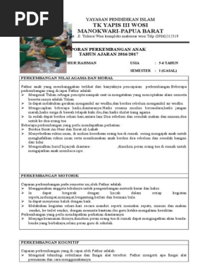 Contoh Laporan Perkembangan Anak Raport Paud Administrasi Paud Administrasi Paud from 2.bp.blogspot.com We did not find results for: Check spelling or type a new query. Maybe you would like to learn more about one of these?
